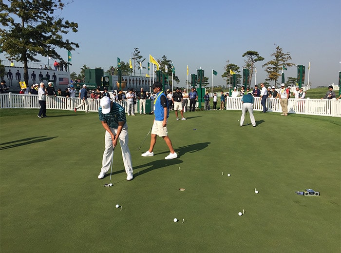 ...as well as when the Aussie moved on to a clock drill to dial in his stroke on 3-footers.
