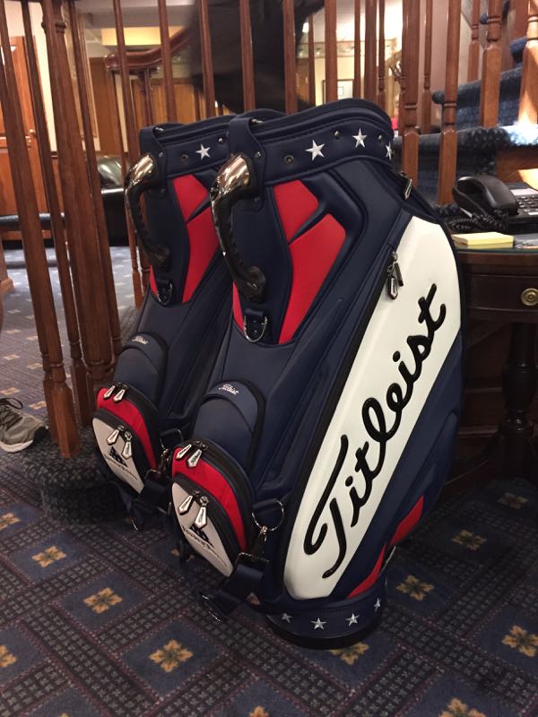 A pair of custom Titleist Staff bags to help support the great work done by Major Dan Rooney and the Folds of Honor organization.
