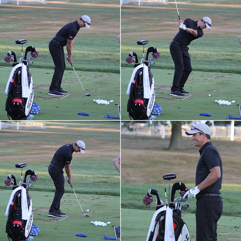 Titleist Brand Ambassador Adam Scott got an early start on the practice range on Tuesday.