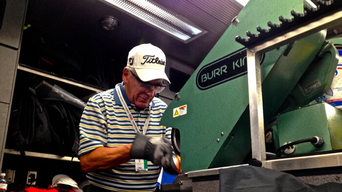 Another quick trip back to the van, and we find The Voke hard at work on the grinding wheel...