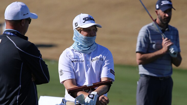 The man behind the veil is Titleist Brand Ambassador Zac Blair (Pro V1). We weren’t sure if he was trying to keep warm on the practice range or Zac always dresses in Bedouin fashion when he plays golf in the desert.