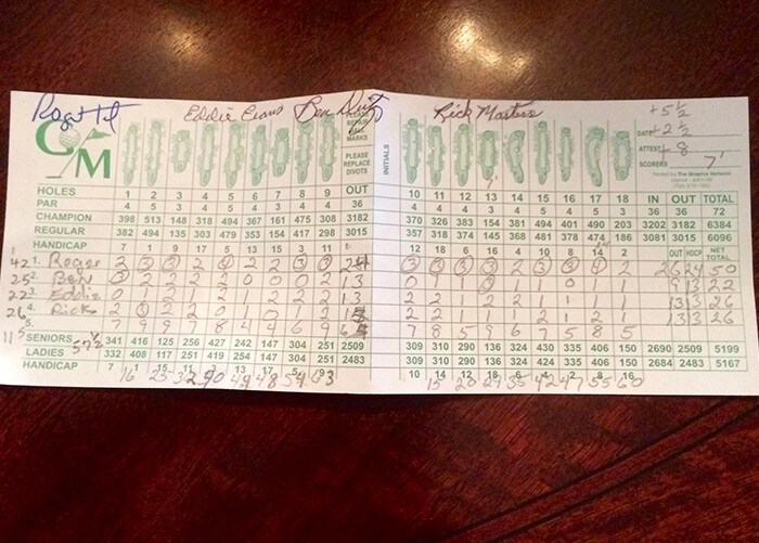 This is Roger's original scorecard from September 21st which shows the group's point scoring system.