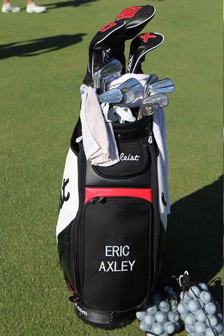 Did we mention Titleist leather headcovers work just as well for left-handed players? Here's the proof, the staff bag of Titleist Brand Ambassador Eric Axley.